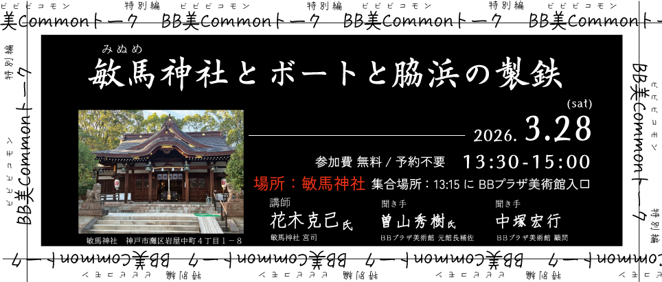 2026年3月28日(土) 13:30-15:00 本美術館に隣接する敏馬(みぬめ)神社を実際に訪れて、花木宮司に神社周辺の歴史を、奈良、平安時代にさかのぼって、敏馬神社を中心に語っていただき、神社が所蔵する貴重な文化財 […]
